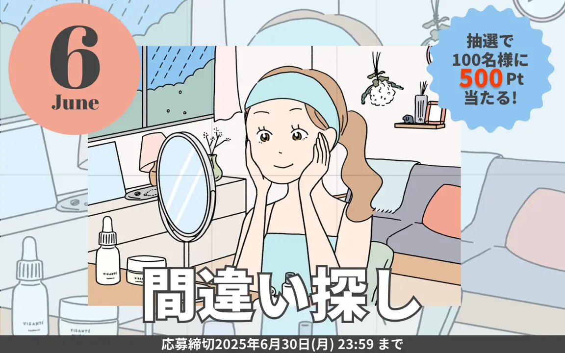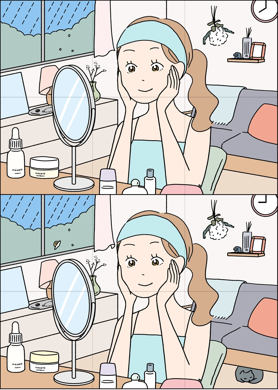 6月は季節の変わり目で特にお肌がゆらぎやすい時期ですよね…今回はスキンケアでお肌を整えているシーンの間違い探しになっています!