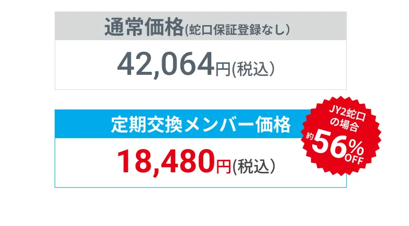 「定期交換メンバー」には蛇口一体型浄水器は6つ、蛇口直結型浄水器は2つのお得で安心のサービスが受けられます。
