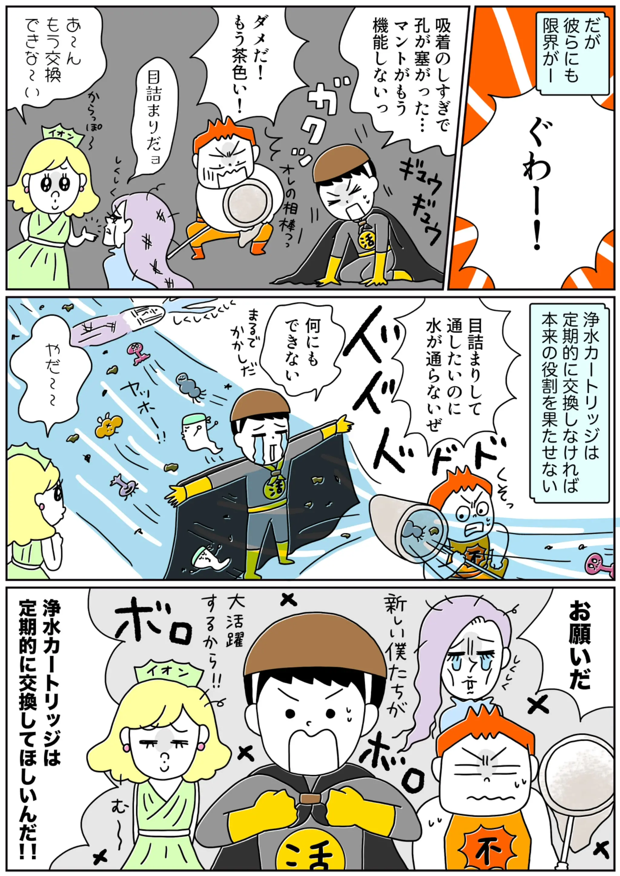 浄水カートリッジの交換が、毎日の「おいしい水」と「安心」を支えていることを感じていただけたでしょうか。カートリッジの活躍は目に見えないですが、適切に交換する・正しく使うことで、浄水性能が保たれるのです。