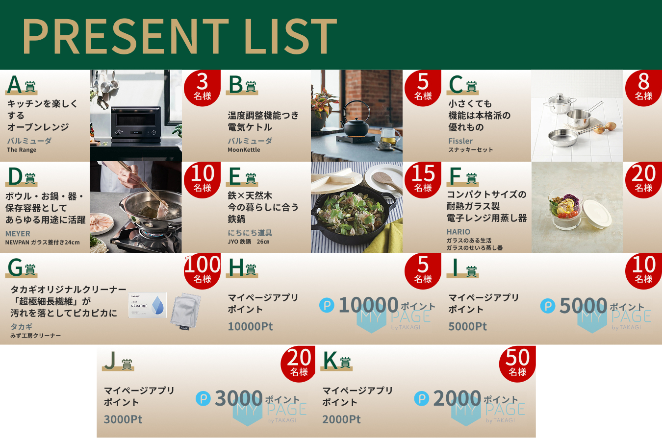 話題の商品や、マイページでのお買い物に使えるポイントなどが246名の方に当たるチャンス!この機会に、タカギマイページアプリをダウンロードしてご応募ください。