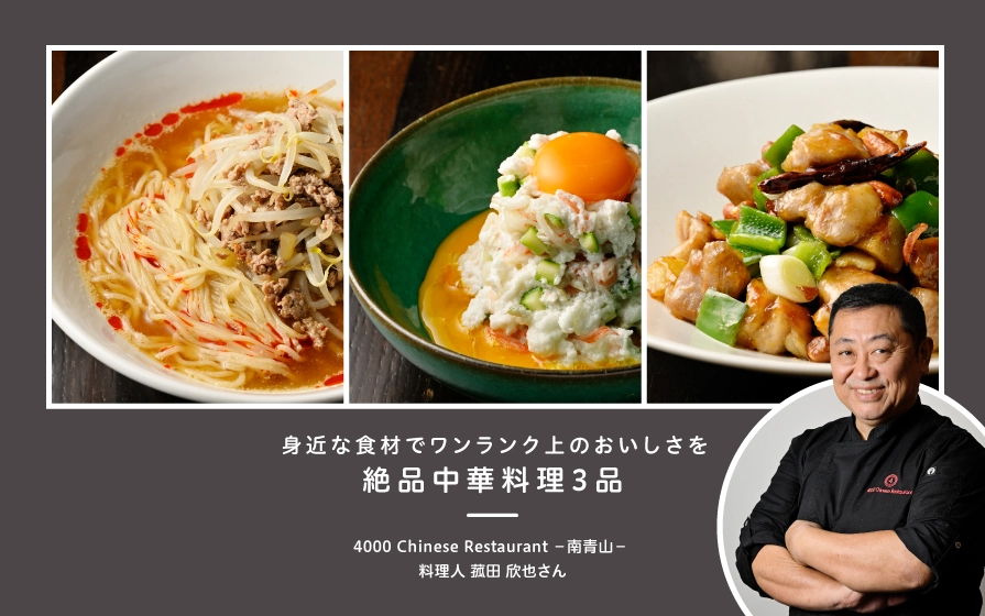 そこで、中華料理の達人として各メディアで活躍中の「4000 Chinese Restaurant」オーナーの菰田欣也さんに、スーパーで簡単に入手できる素材を使った3品の作り方と、中華の調理の極意を教えてもらいました。