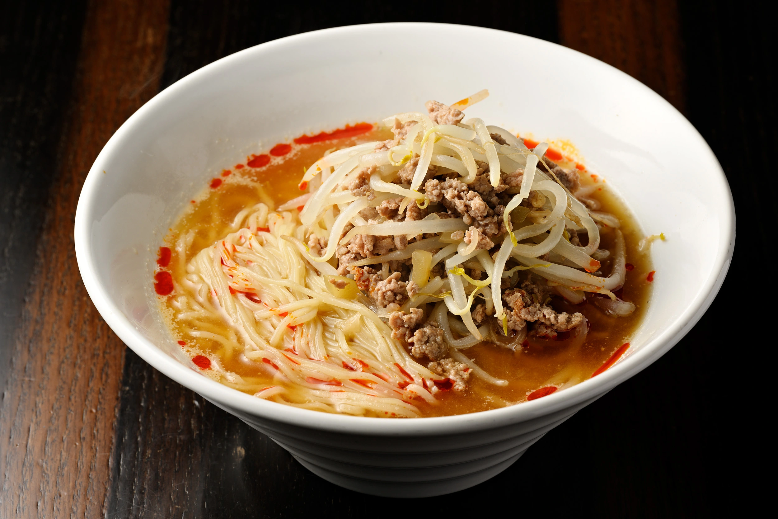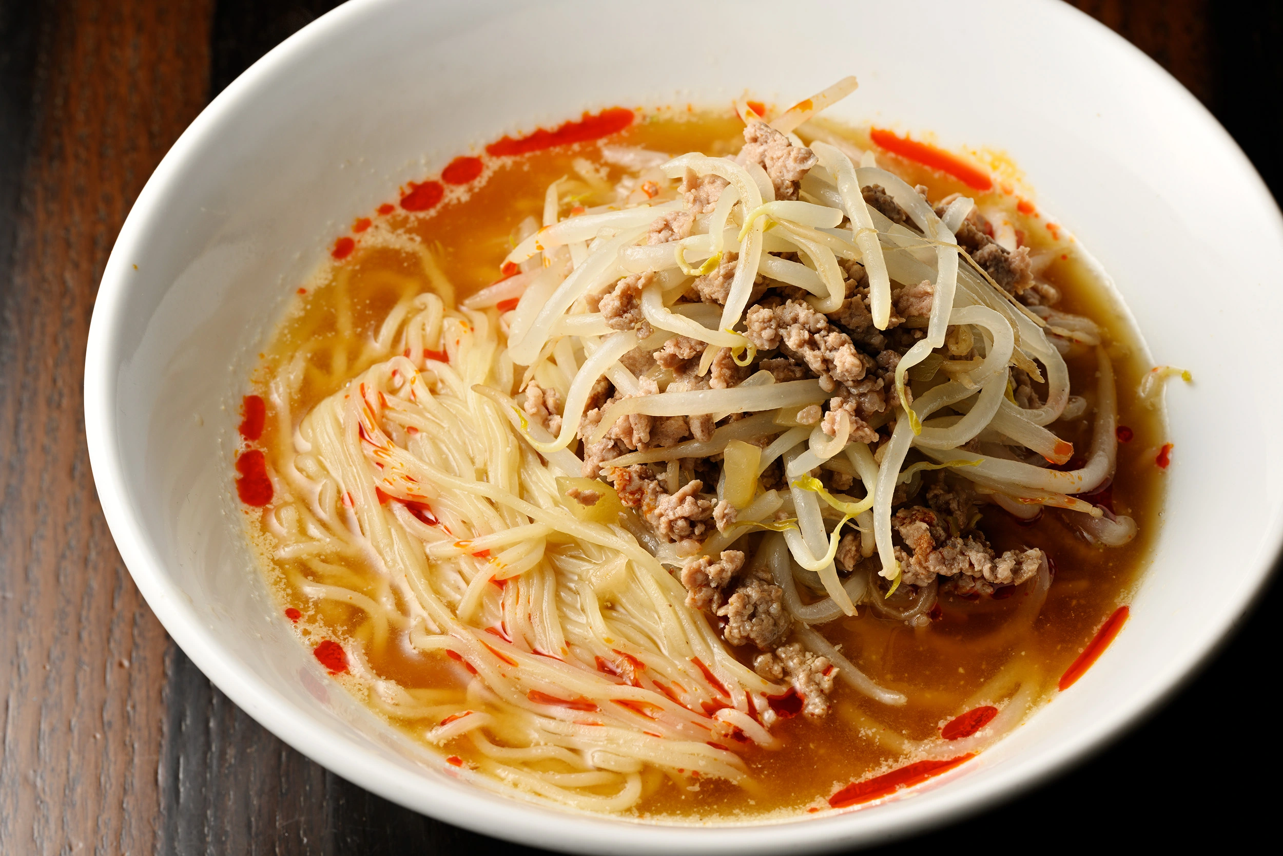 ごまの香りと挽き肉のコクがしっかり効いた大満足の味と食べ応えですが、実は調理に油を使わず、もやしがたっぷりトッピングされていて、見かけよりずっとヘルシーです。