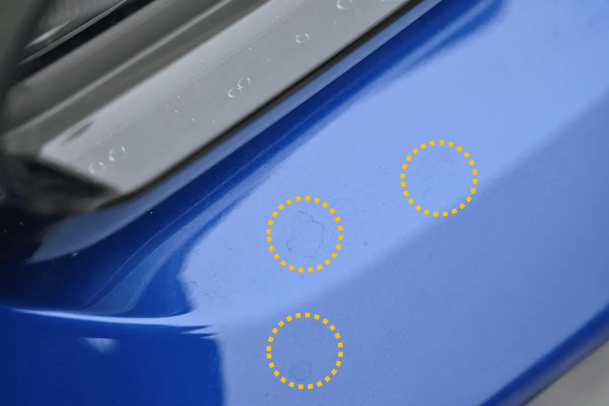 こうした有機物も、つけっ放しにしているとタンパク質が塗装の表面を変質させ、ボディに凹みを作ってしまいます。アルカリ性シャンプーで洗い流しましょう。