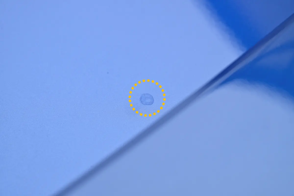 さらに、黄砂は水分を含むと固まるので、雨が降ると白いシミになり、通常の洗車ではなかなかとれません。(写真:黄色いマル部分)