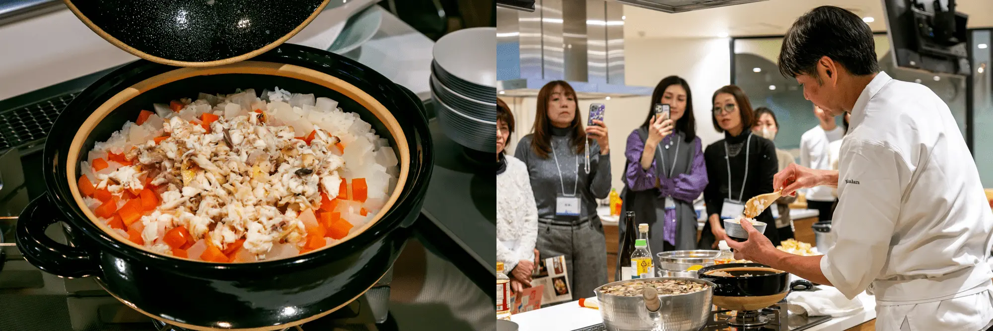 今回のスペシャルイベントでは、冬場に旬を迎える食材を使い、クリスマスやお正月といったハレの日にも活躍する和食3品を実演。