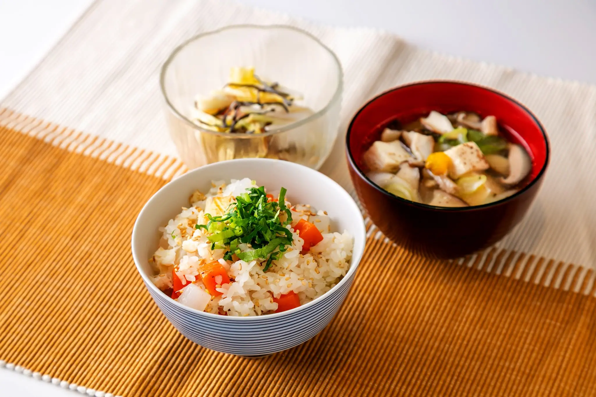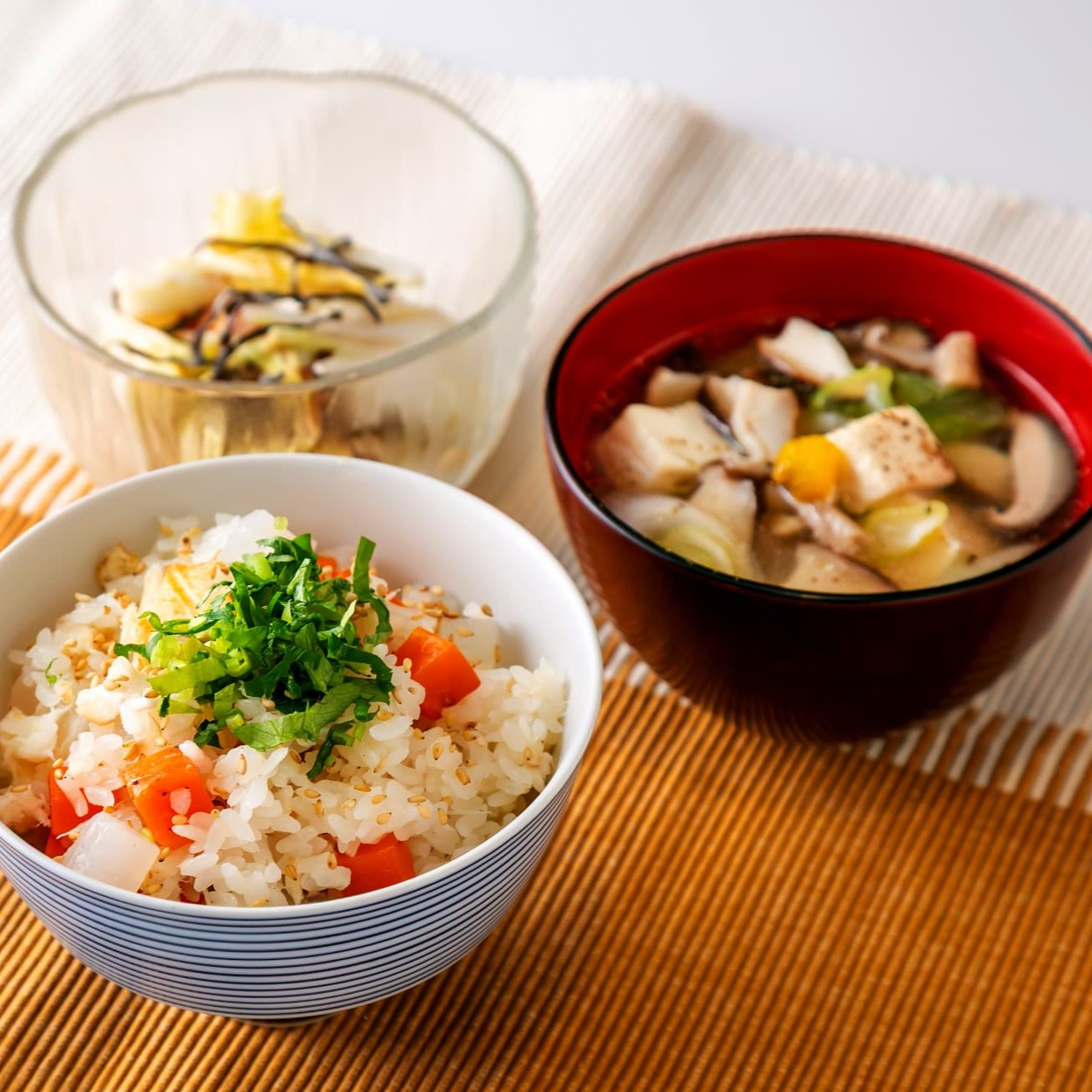 メニューは『鯛と大根、人参の炊き込みご飯』『鶏と豆腐のお吸いもの』『白菜サラダ』。どれも家庭で再現しやすく、それでいて食卓がぱっと華やぐ内容です。