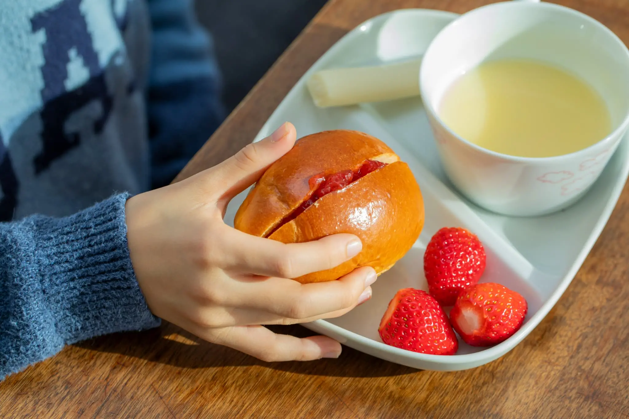 もっと手軽に済ませたい日は、「おにぎりとヨーグルトかチーズ」。もしくは「パンとスープ」。パンの場合、たとえばロールパンなら、上の子はジャムを挟み、下の子たちは何もつけずそのまま出しています。