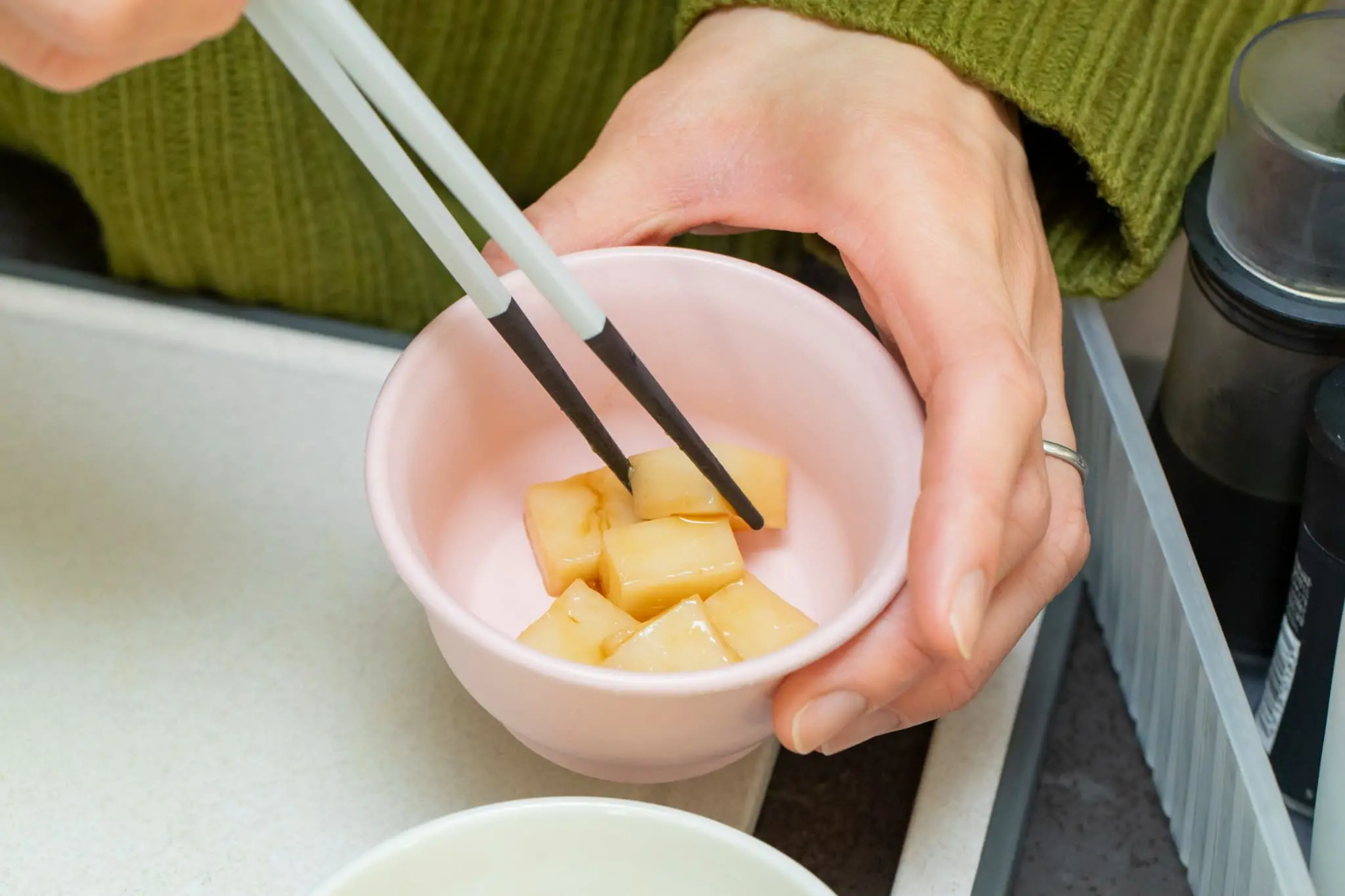 たとえばお肉なら、小さなお子さんは焼いたりゆでたりするだけのものを出し、残りは後から味をつければOK。あとは蒸したさつまいもやじゃがいもも、味をつけてアレンジしやすく便利です。お野菜はスティック状に切ってあげると、小さなお子さんはつかみやすいですね。