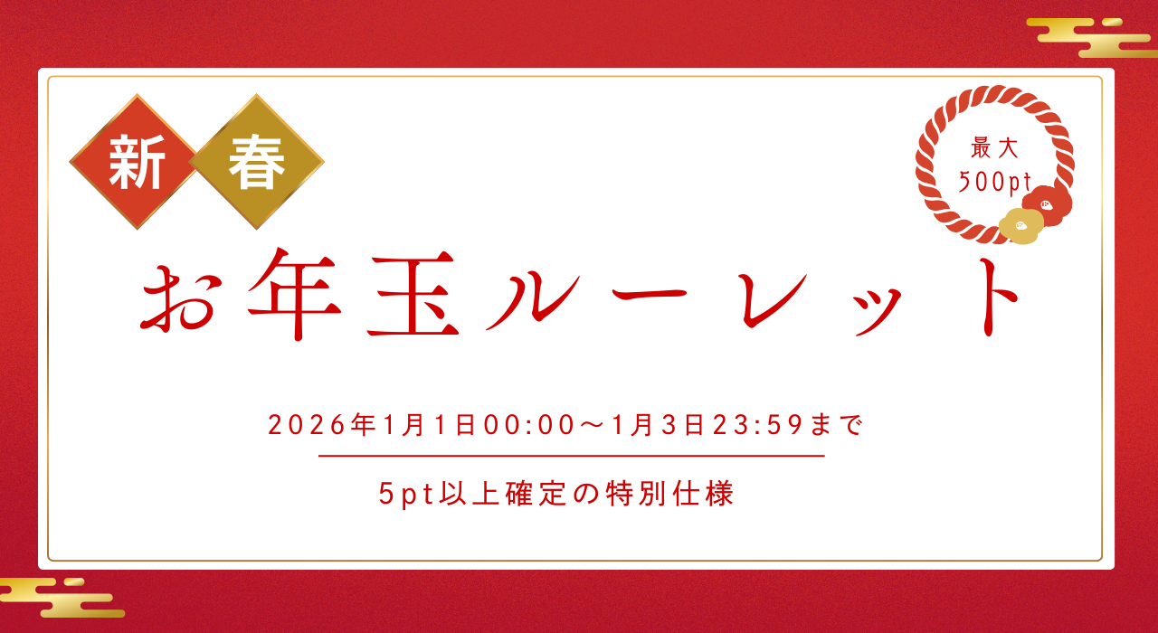 2026年1月1日(元日)より3日間限定で、アプリ内の「1日1回ルーレット」が、もれなくポイントアップする特別仕様となります。