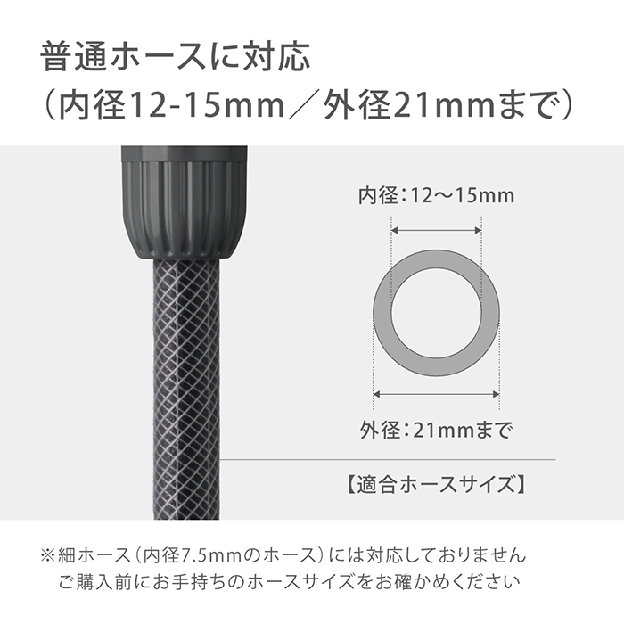 | 商品説明 | コネクターにワンタッチでホースをつなげるアイテムです。 ワンタッチでホースを取り外しできるコネクターを付属しています。 普通ホース(内径12-15mm/外径21mmまで)に対応しています。 |