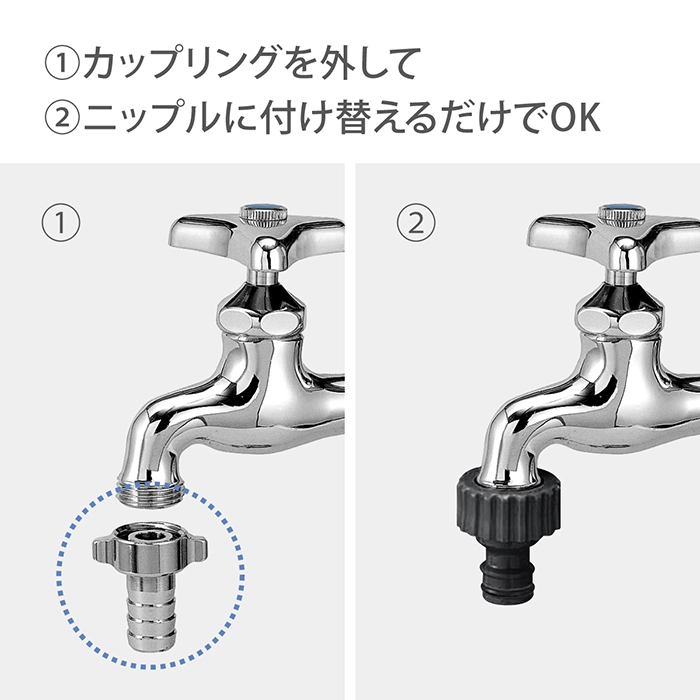 カテゴリ 蛇口用ニップル サイズ H121×W87×D36 mm 容量 23g JANコード 4975373200103 商品説明 ネジ付き蛇口に取り付けて、コネクター(別売り)付きホースの取り外しがワンタッチで操作可能です。 取付られる蛇口はネジ付き蛇口、地下散水栓。呼び径13、管用平行ネジG1/2です。