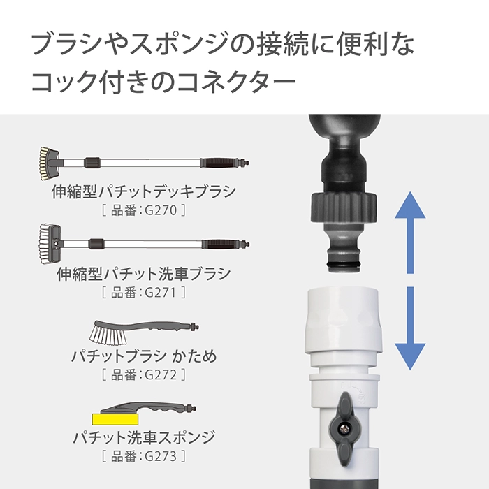 カテゴリ コネクター 取扱説明書 →取扱説明書はこちら(PDF) サイズ H187×W97×D46mm 容量 102g JANコード 4975373200141 商品説明 ホースやノズルの取り外しがワンタッチになる便利なアイテムです。 切替コックで通水・止水の切り替えができます。 普通ホース(内径12-15mm/外径21mmまで)に対応しています。