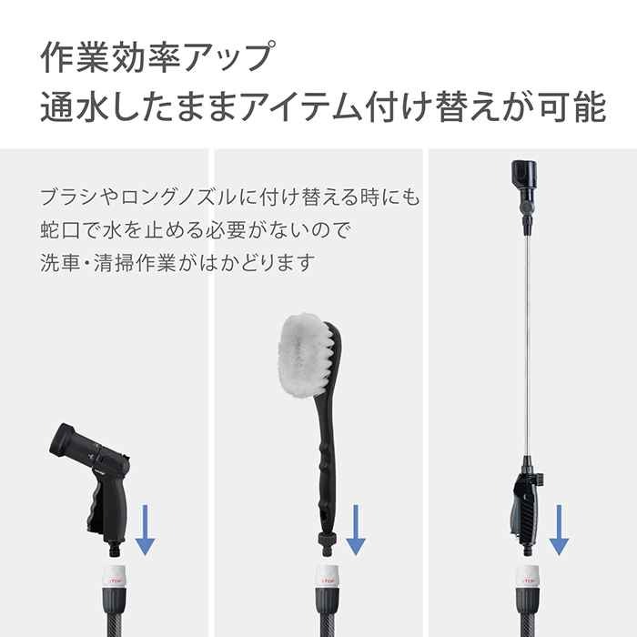 | 商品説明 | ホースやノズルの取り外しがワンタッチになる便利なアイテムです。 |