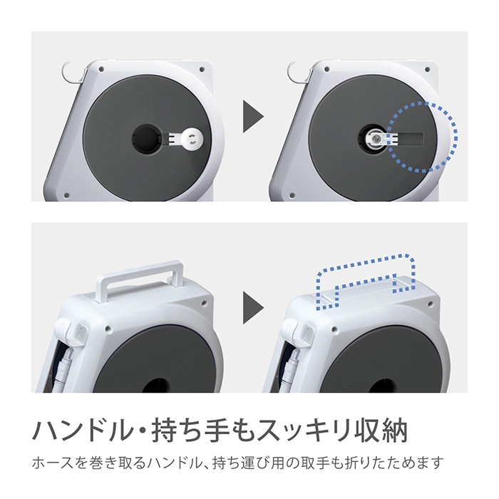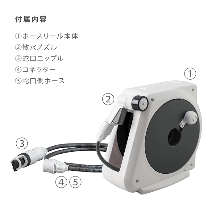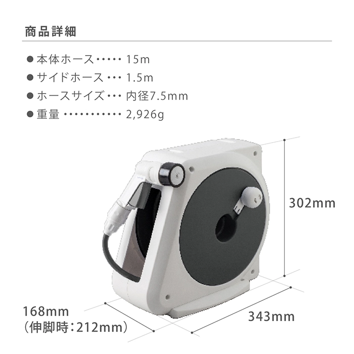 | 商品説明 | すっきり収納できる、軽量コンパクトタイプの散水ホースリールです。 |