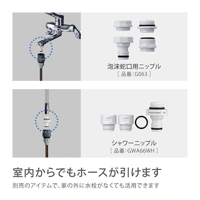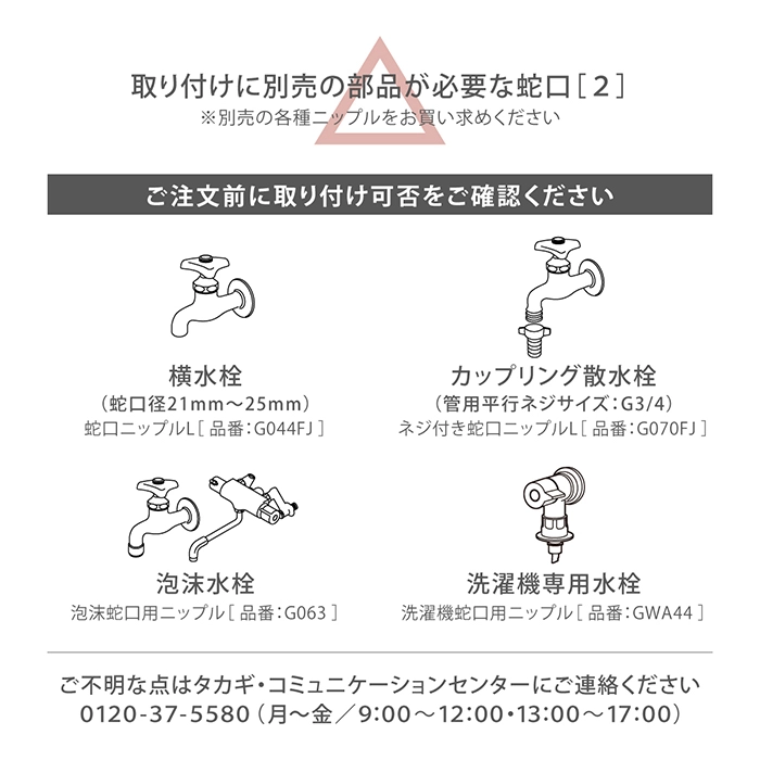 | 注意事項 | ・本品は一般家庭での屋外散水用です。 それ以外の目的には使用しないでください。 |
