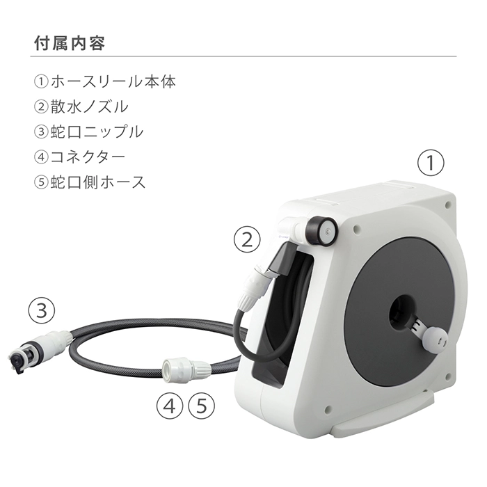 | 商品説明 | すっきり収納できる、軽量コンパクトタイプの散水ホースリールです。 |