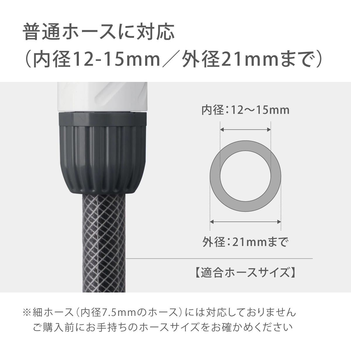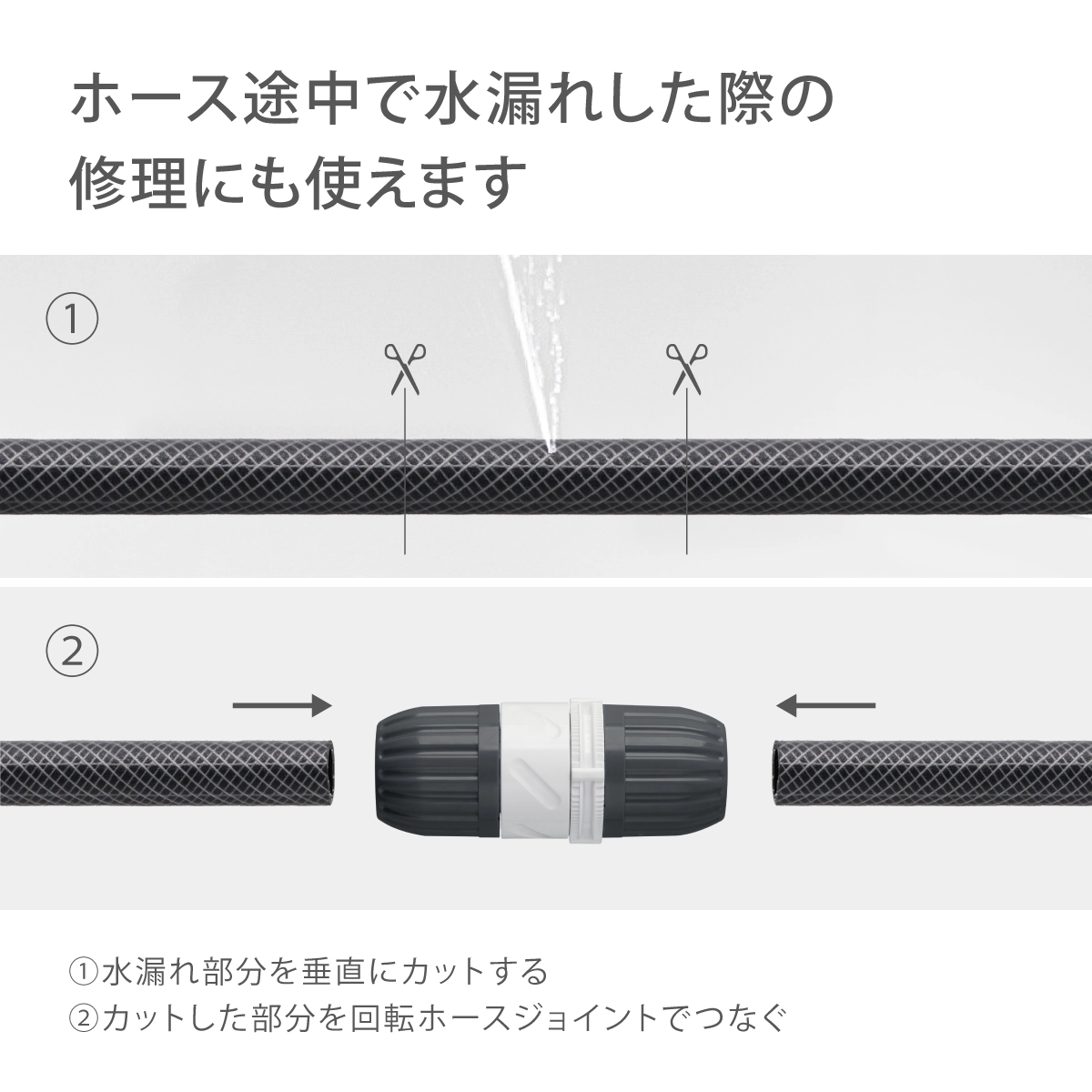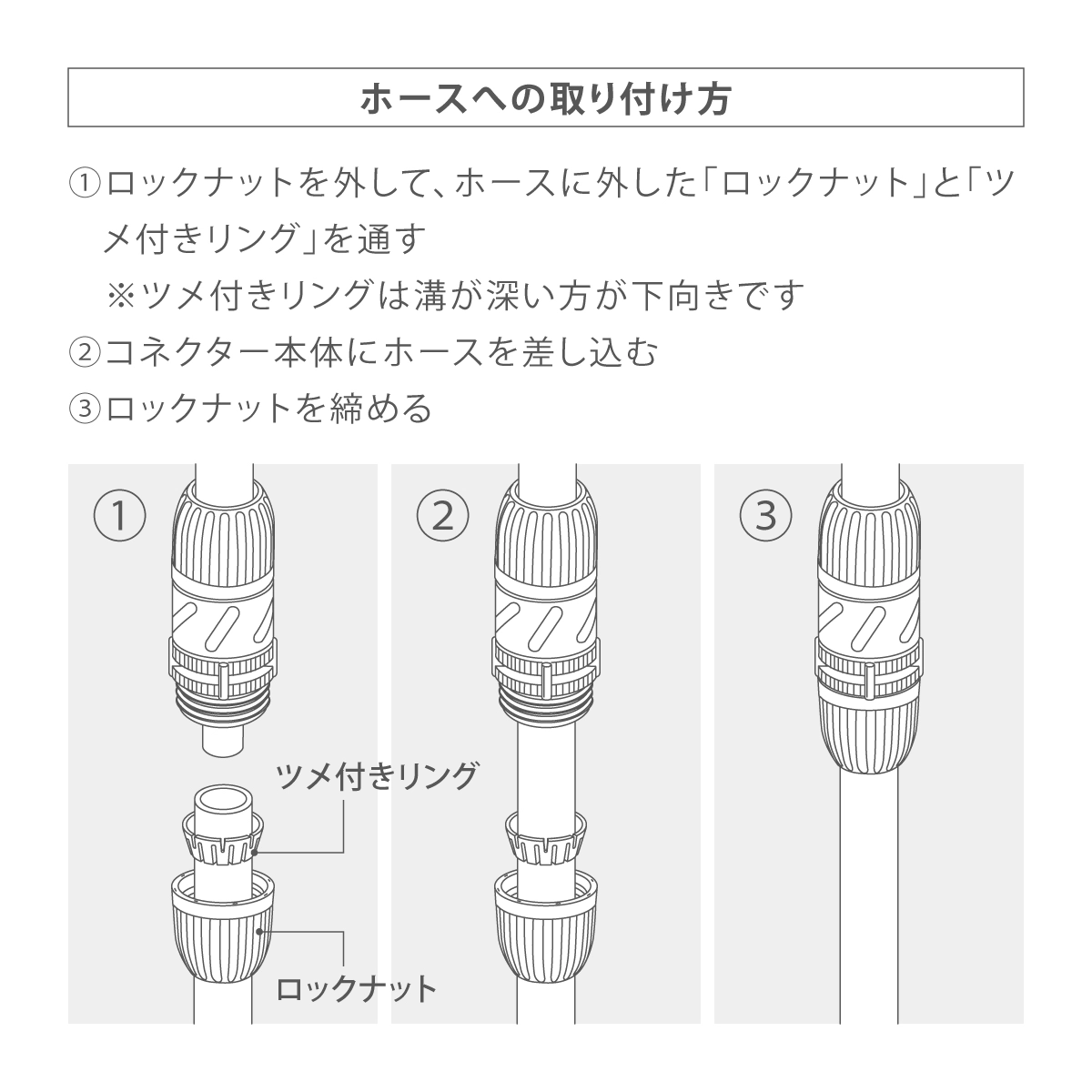 | 商品説明 | ホースとホースの接続に使用します。ホースバンドや針金を使わずに簡単にホースの接続ができます。 |