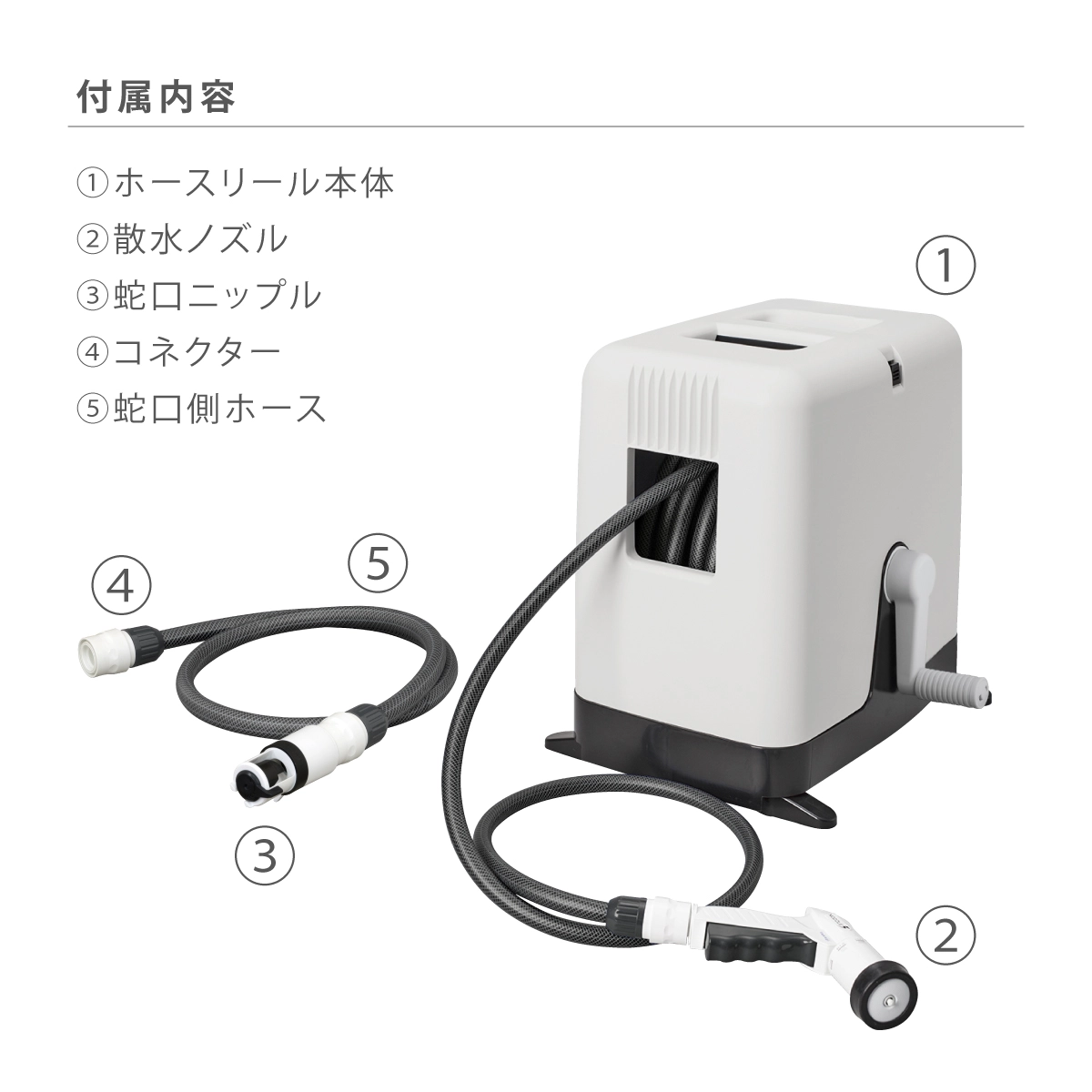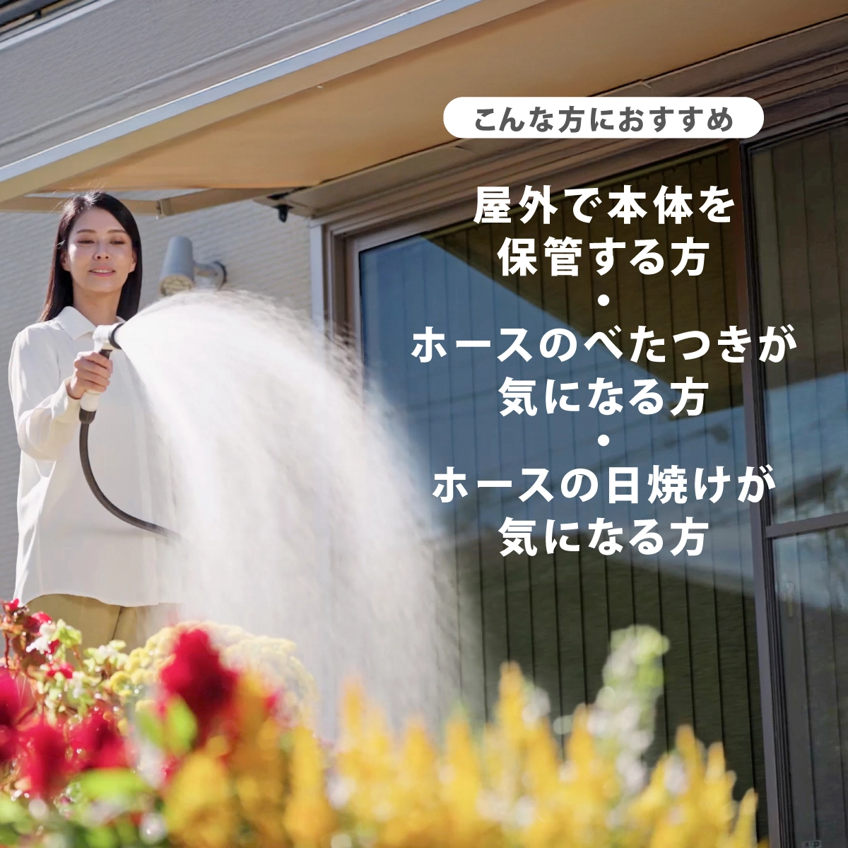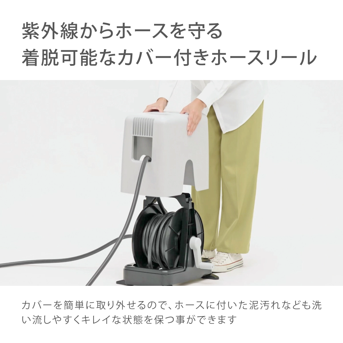 | 商品説明 | 差しからホースを守る着脱可能なカバー付きボックスタイプの散水ホースリールです。 ■製品仕様 |