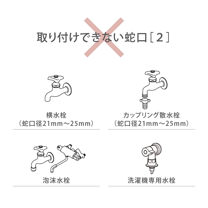 カテゴリ 蛇口用ニップル 取扱説明書 →取扱説明書はこちら(PDF) JANコード 4975373200509 商品説明 蛇口を2分岐できる便利なアイテムです。 ダイヤル操作で水の方向も切り替えできます。 取付られる蛇口は横水栓(蛇口径14-18mm)、万能ホーム水栓です。