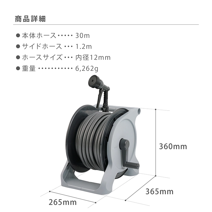 | サイズ | H360×W265×D365 mm(ホースサイズ:内径12mm) |