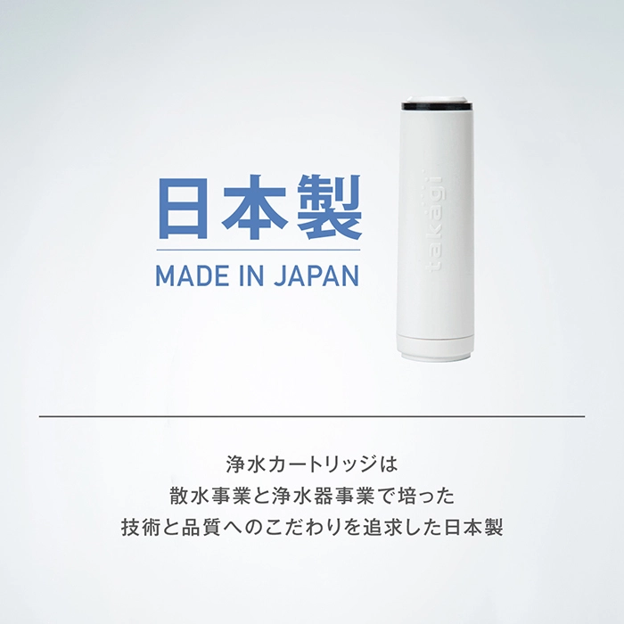 | 使い方 | [交換サイクル目安] ・4人以上のご家族:2か月サイクル ・3人家族:3か月サイクル ・2人家族:4か月サイクル ※1人1日8分(64L)使用した場合 ※節水スクリーンや止水機能を使用しない場合 [浄水カートリッジ1個あたりの交換目安] ・2か月サイクル:1個を約30日で交換 ・3か月サイクル:1個を約45日で交換 ・4か月サイクル:1個を約60日で交換 ※カートリッジは通水後、徐々に性能が低下し規定の浄水能力を下回る可能性があります。安心してお使いいただくために4か月サイクルを最長としています。 |