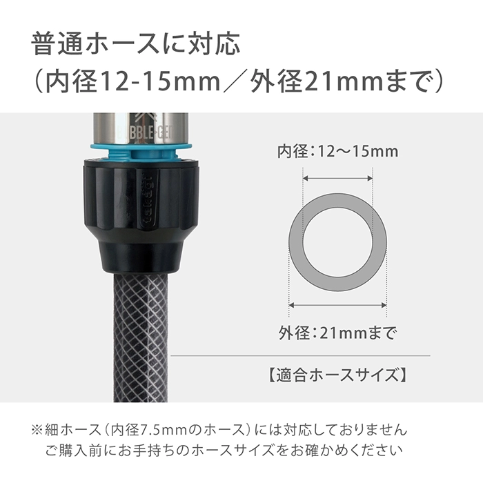 | 注意事項 | ●本品は一般家庭での屋外散水用です。 それ以外の目的には使用しないでください。 ●使用後は必ず蛇口を閉め製品内部の水を十分に抜いてください (凍結破損防止・製品保護)。 ●コネクターは全自動洗濯機、食器洗い機などの給排水が自動の機器に使用しないでください。 ●接続用ホースは「耐圧ホース」 を使用してください。 ●井戸水で使用しないでください。 ●火気の近くで使用しないでください。 ●常温以外の水を使用しないでください。 |