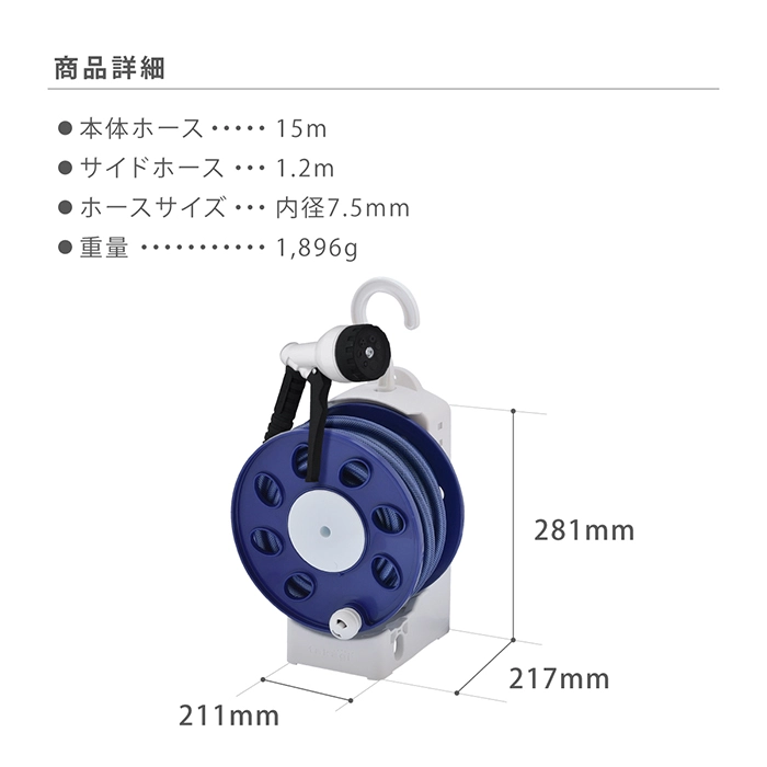 | 商品説明 | ・ホース巻き取りハンドル付のハンガータイプのコンパクトリール。