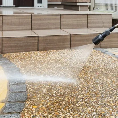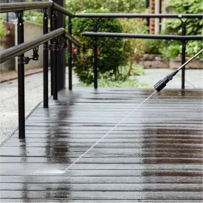 デッキやタイル目地など小さな溝の汚れを水圧で落とします。