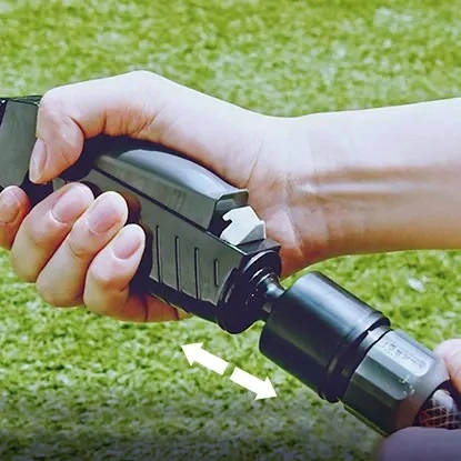角度変更できる先端ノズル。シーンに合わせて180度の範囲でお好みに角度調整が可能です