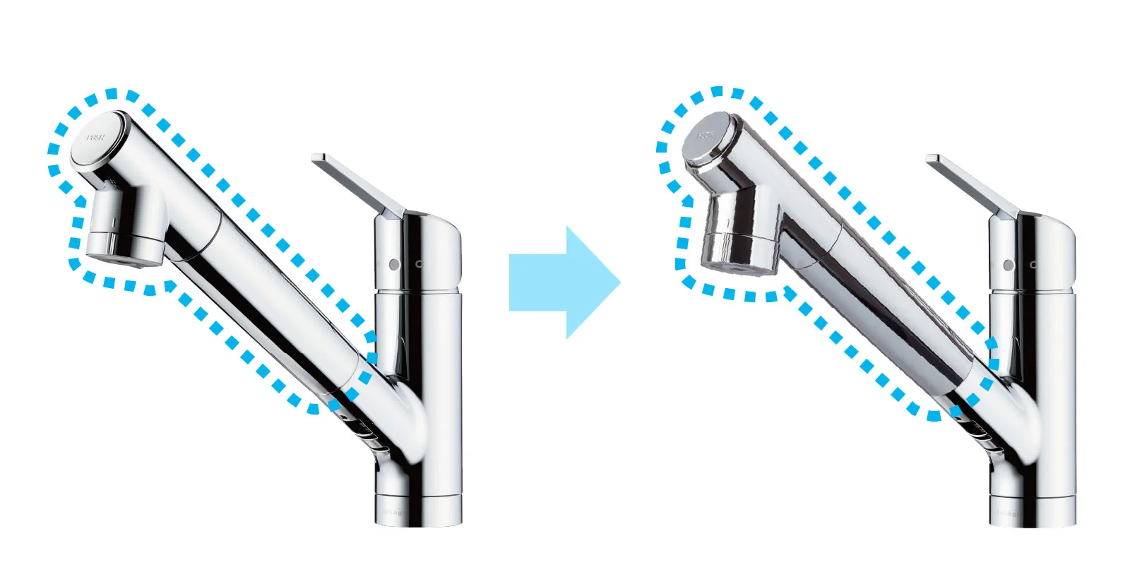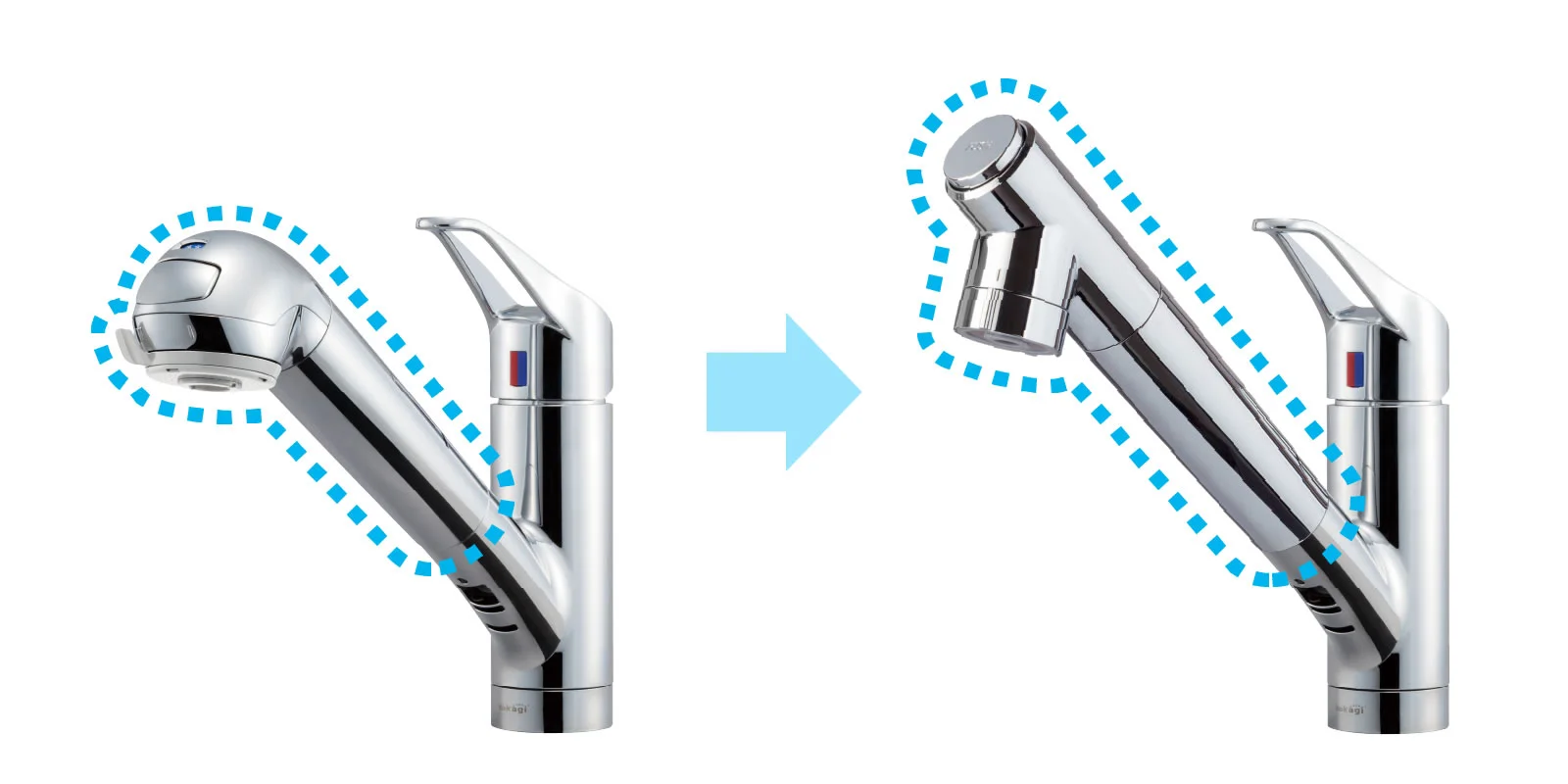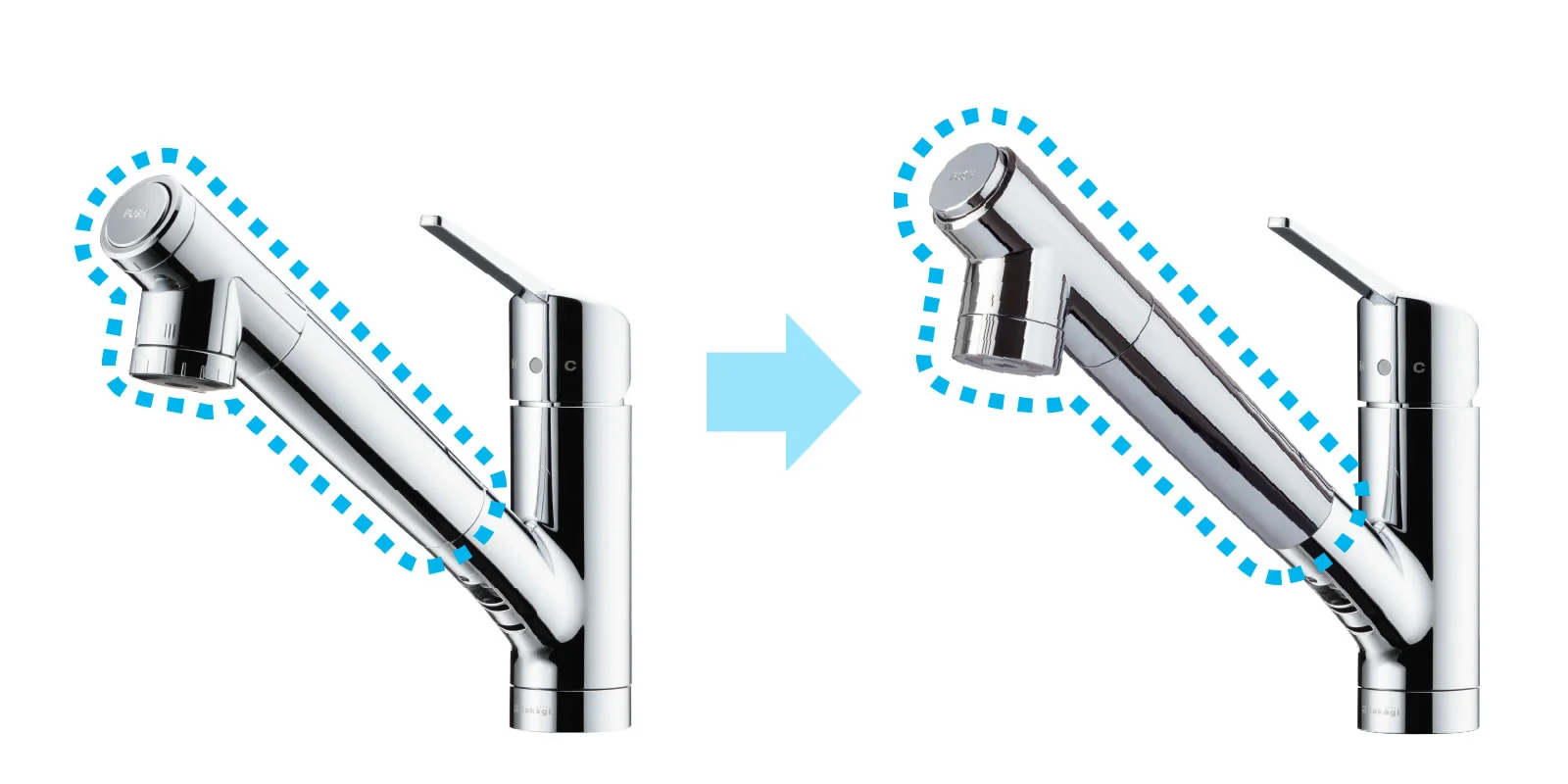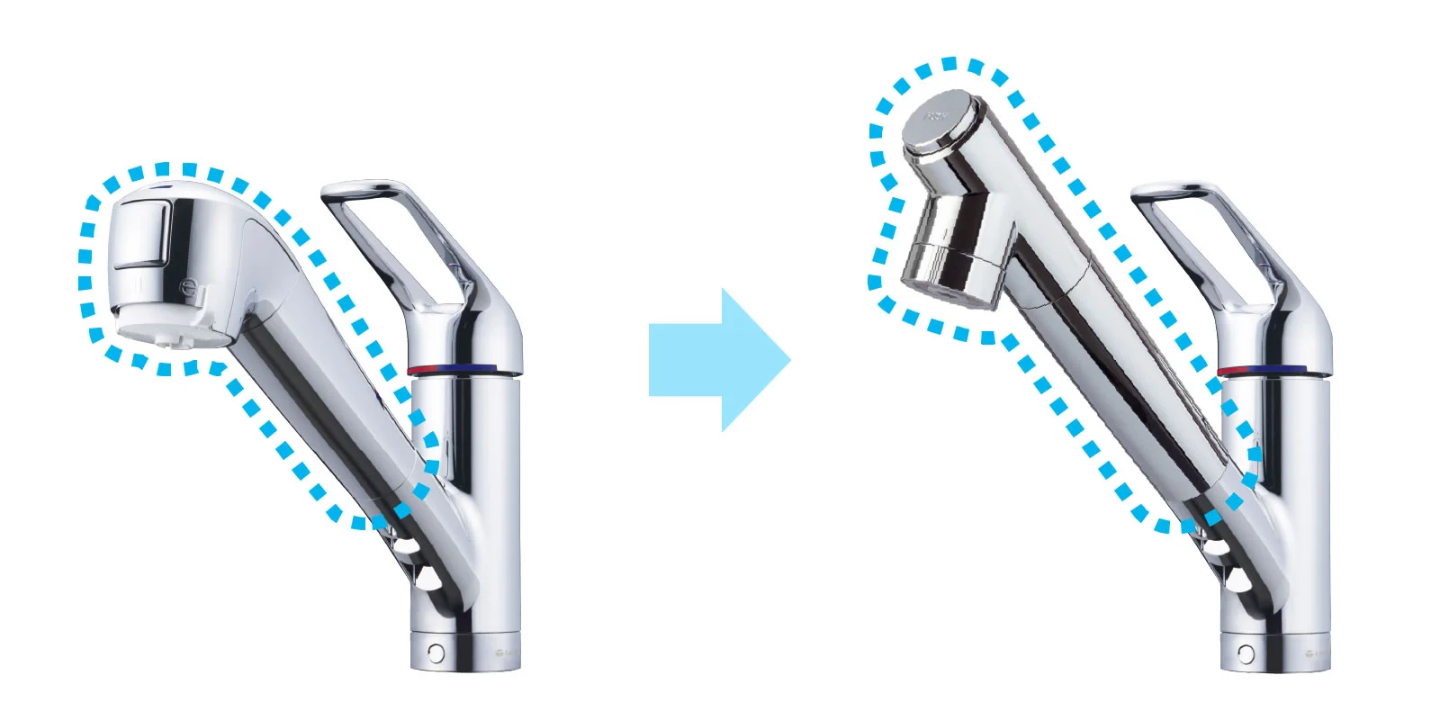吐水口が7.3mm長く、高さが9.8mm高くなります。