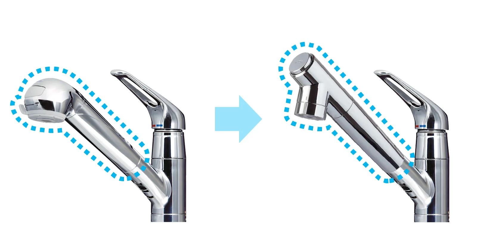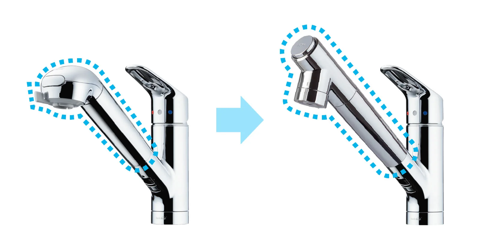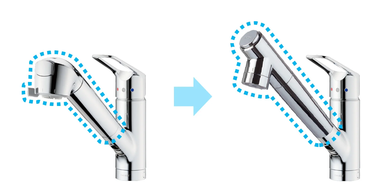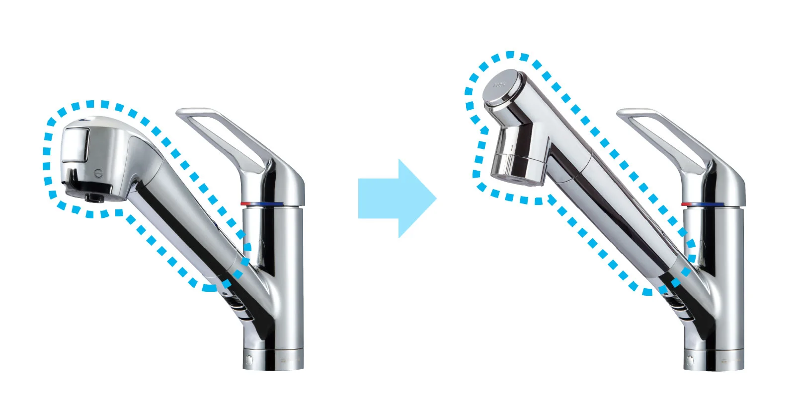 吐水口が7.3mm長く、高さが9.8mm高くなります。
