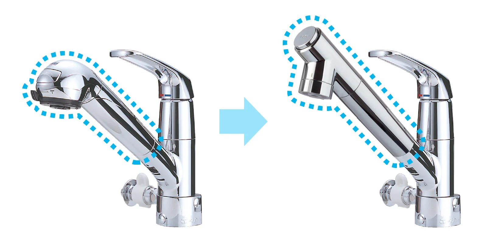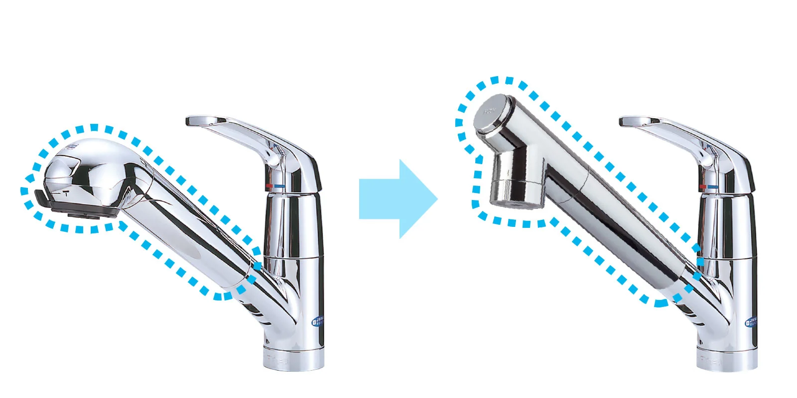 吐水口が5.8mm短く、高さが2.7mm低くなります。