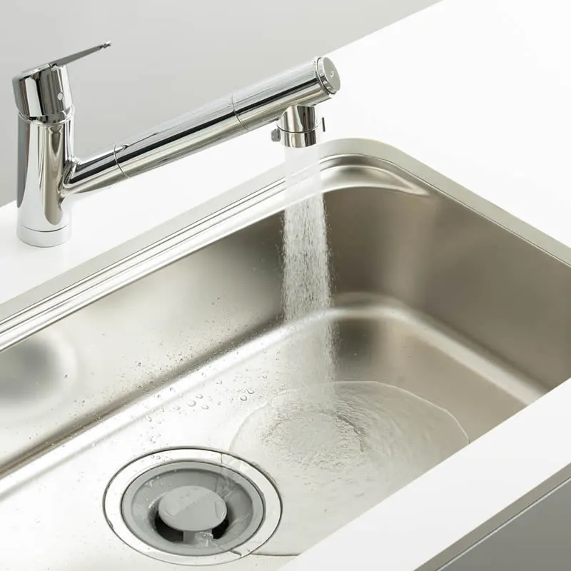 水ハネが少ないからシンク周りの拭き取り掃除が楽に。キッチンリセットの時短が期待できます。